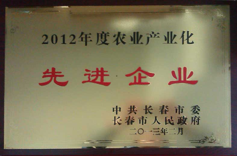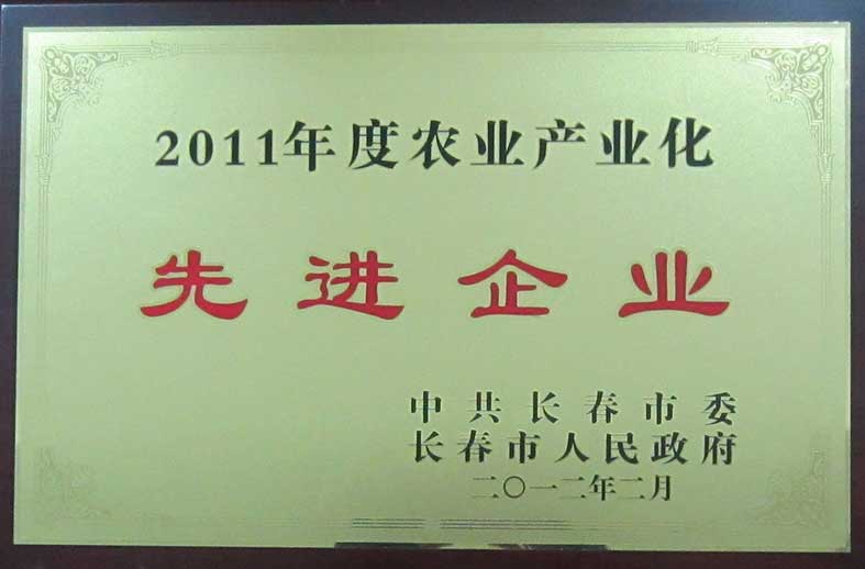 長春市委市政府2011年度農(nóng)業(yè)產(chǎn)業(yè)化先進(jìn)企業(yè)