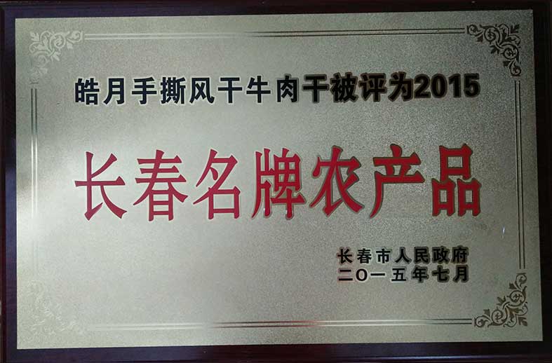 皓月手撕風(fēng)干牛肉干被評為2015長春名牌農(nóng)產(chǎn)品
